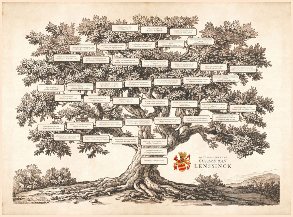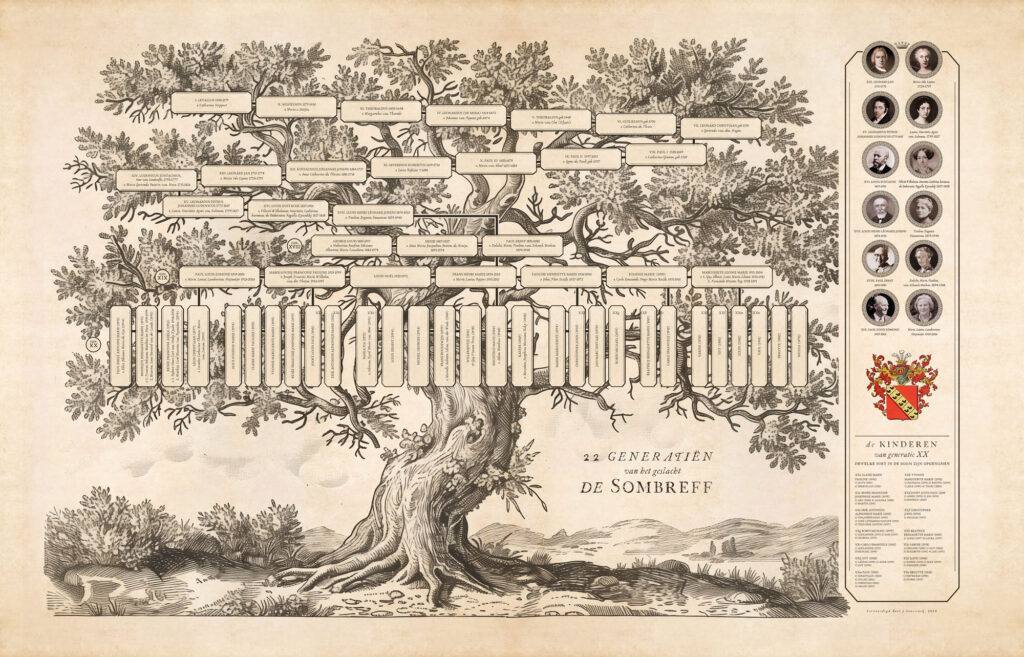 Drawing family trees is an art that has all but disappeared. Since 2023, I have been making custom-drawn family trees in 16th to 19th century style, using a mix of traditional and digital techniques. As far as I know, I am the only one who can make them.